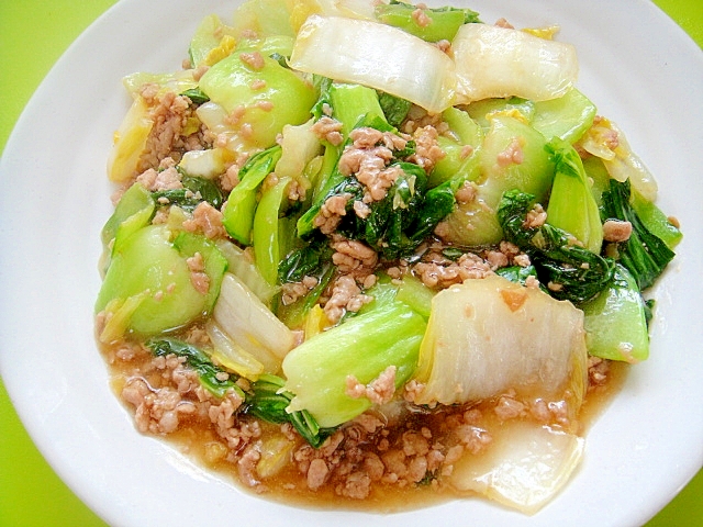 チンゲン菜と白菜の中華そぼろ炒め レシピ 作り方 By Mint74 楽天レシピ