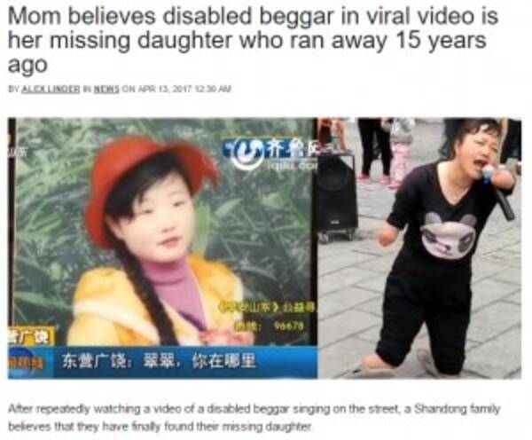 両親ショック 手足を切断され物乞いする女性は15年前に失踪したわが子か 中国 17年4月日 エキサイトニュース